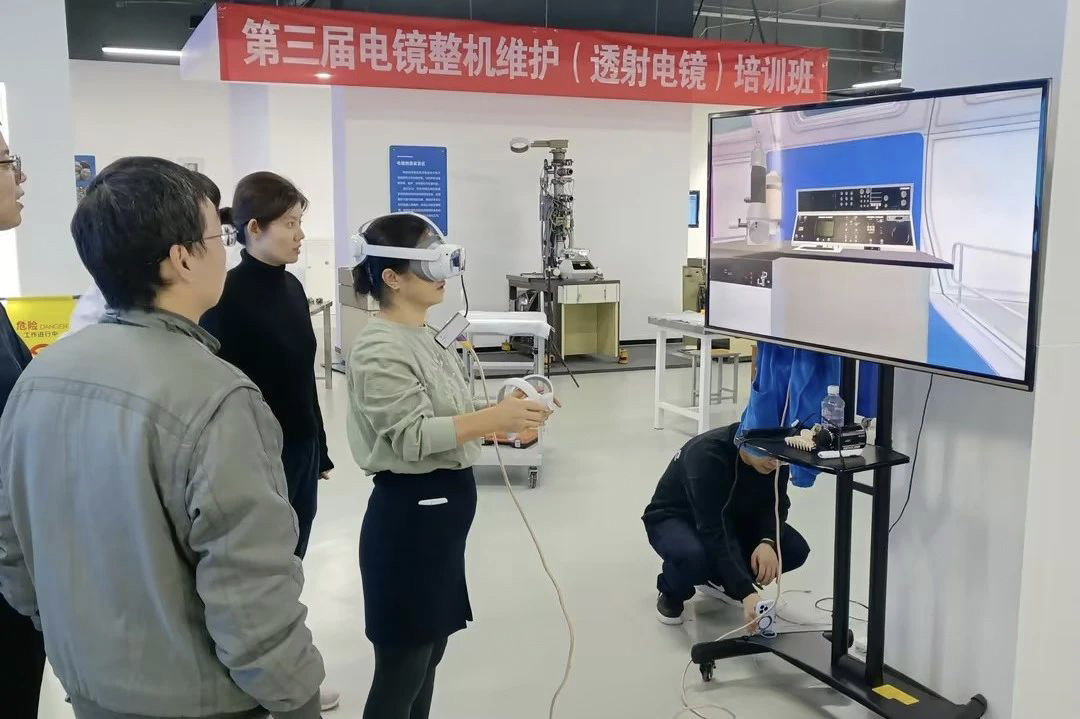 第三屆電鏡整機(jī)維護(hù)(透射電鏡) 培訓(xùn)班圓滿落幕 結(jié)業(yè)儀式現(xiàn)場 本屆培訓(xùn)班銳意創(chuàng)新、亮點(diǎn)突出,內(nèi)容涵蓋了透射電鏡的基本原理、結(jié)構(gòu)組成、日常維護(hù)、故障診斷與排除等多個(gè)方面,并通過虛擬現(xiàn)實(shí)(VR)技術(shù),體驗(yàn)未來電鏡操作的新場景。課程以“實(shí)操”和“實(shí)用”為首要標(biāo)準(zhǔn),將課堂講授、現(xiàn)場體驗(yàn)有機(jī)結(jié)合,靈活運(yùn)用學(xué)習(xí)研討、雙向交流等多種教學(xué)手段,幫助學(xué)員達(dá)到優(yōu)化知識(shí)結(jié)構(gòu),提高解決問題的能力。 培訓(xùn)現(xiàn)場 培訓(xùn)過程中,學(xué)員們積極參與,就工作中遇到的實(shí)際問題與講師展開了熱烈的討論。在實(shí)踐操作環(huán)節(jié),學(xué)員們在老師的指導(dǎo)下,實(shí)操練習(xí)透射電鏡鏡筒、控制臺(tái)拆裝以及電鏡整機(jī)安裝,同時(shí),通過沉浸式體驗(yàn)河南元宇宙儀器有限公司(菲泰姆)研發(fā)的虛擬現(xiàn)實(shí)(VR)電鏡拆裝項(xiàng)目,進(jìn)一步加深了對電鏡結(jié)構(gòu)的理解。學(xué)員們紛紛表示,此次培訓(xùn)內(nèi)容豐富詳實(shí),理論與實(shí)踐緊密結(jié)合,有較強(qiáng)的培訓(xùn)獲得感。 透射電鏡鏡筒拆裝現(xiàn)場 體驗(yàn)虛擬現(xiàn)實(shí)(VR)電鏡拆裝項(xiàng)目現(xiàn)場 本次培訓(xùn),在中國材料與試驗(yàn)標(biāo)準(zhǔn)平臺(tái)及全國分析檢測人員能力培訓(xùn)委員會(huì)(CSTM/NTC)的指導(dǎo)下,對培訓(xùn)內(nèi)容和規(guī)范化進(jìn)行了優(yōu)化,學(xué)員培訓(xùn)合格后獲得相應(yīng)的國家級(jí)證書。 在培訓(xùn)班結(jié)業(yè)儀式上,河南化工技師學(xué)院副校長趙繼高,微束科技集團(tuán)董事長、中鏡科儀集團(tuán)董事長郭新勇,浙江大學(xué)研究員洪健,河南化工技師學(xué)院教授管錚、實(shí)驗(yàn)技術(shù)學(xué)院院長魏葆婷,上海大學(xué)工程師寇春合共同為學(xué)員們頒發(fā)了結(jié)業(yè)證書。 頒發(fā)證書合影留念 本屆培訓(xùn)班,為學(xué)員們搭建了學(xué)習(xí)交流的平臺(tái),促進(jìn)了電鏡維護(hù)技能的提升。期待更多青年學(xué)者加入到電鏡技術(shù)研究中,為我國科研事業(yè)的發(fā)展注入新的活力。 合影留念