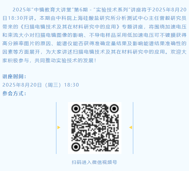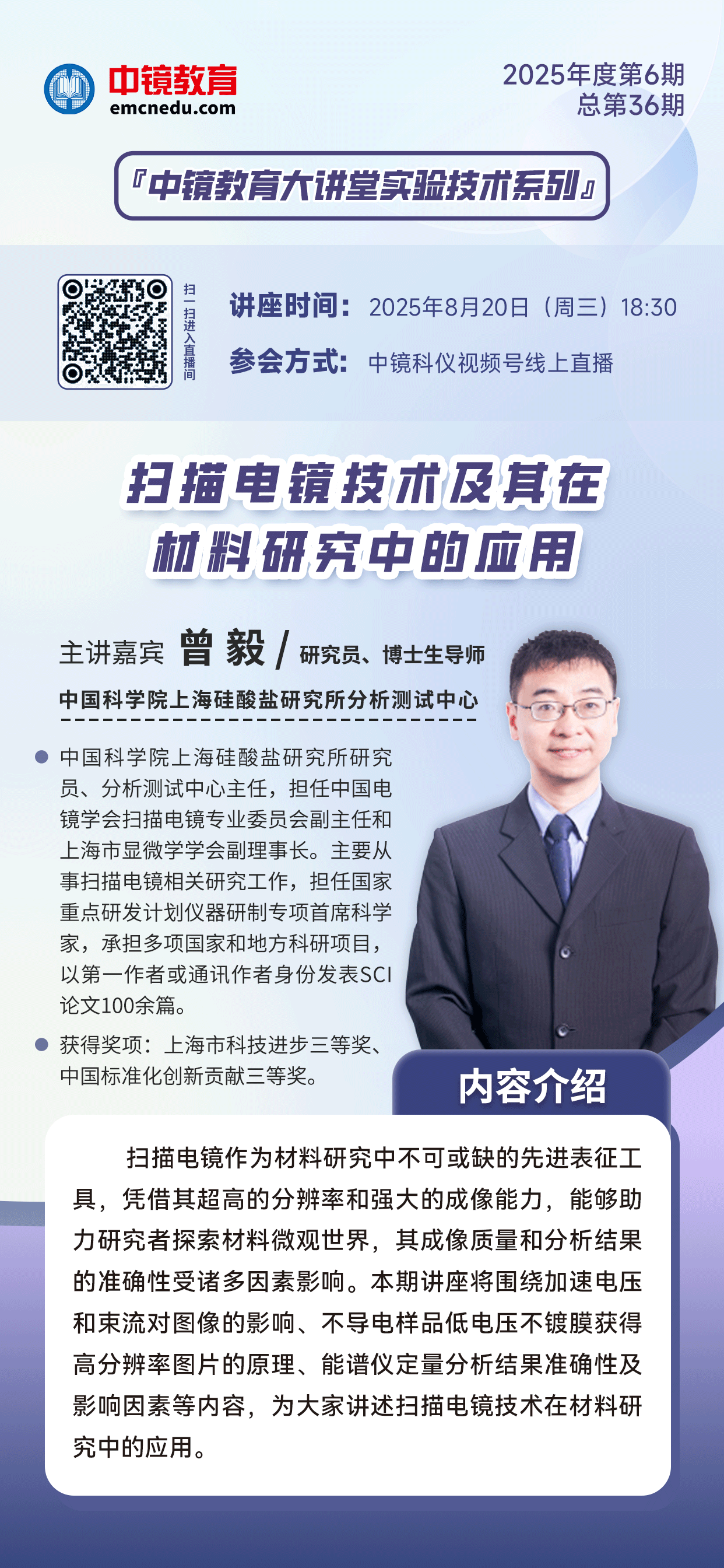 【講座預(yù)告】中鏡教育大講堂-實(shí)驗(yàn)技術(shù)系列2025年第6期(總第36期)