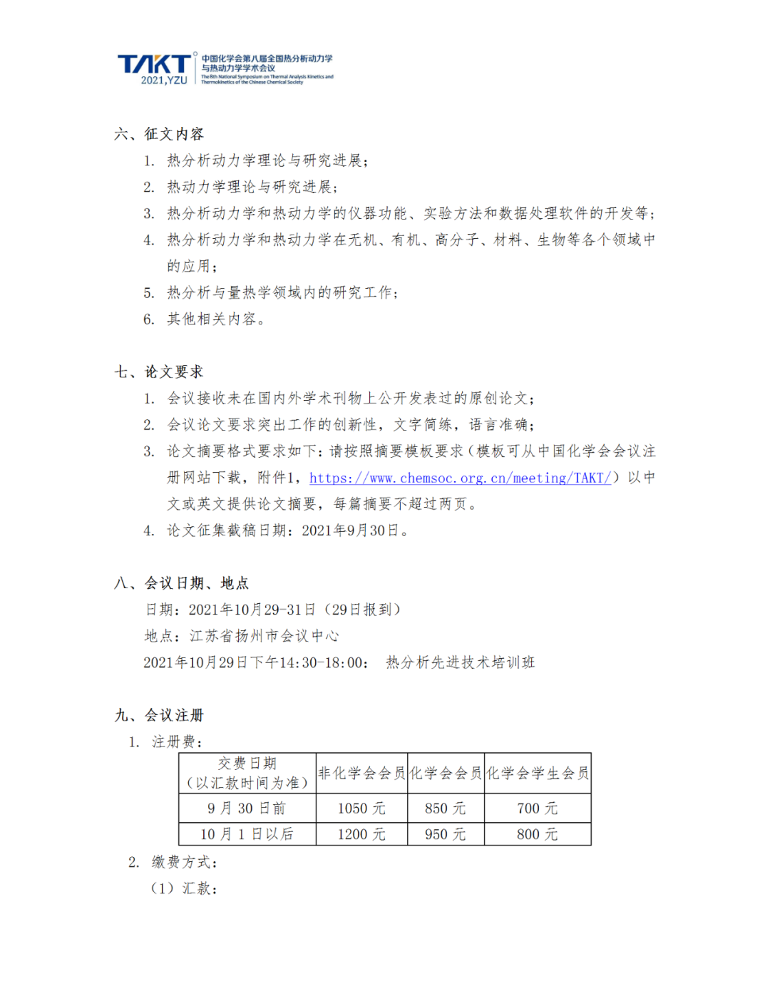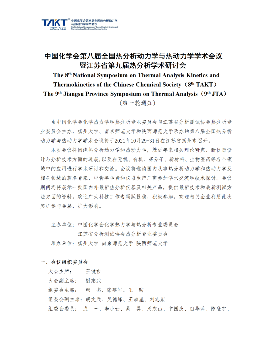 中國化學會第八屆全國熱分析動力學與熱動力學學術會議暨江蘇省第九屆熱分析學術研討會(第一輪通知)