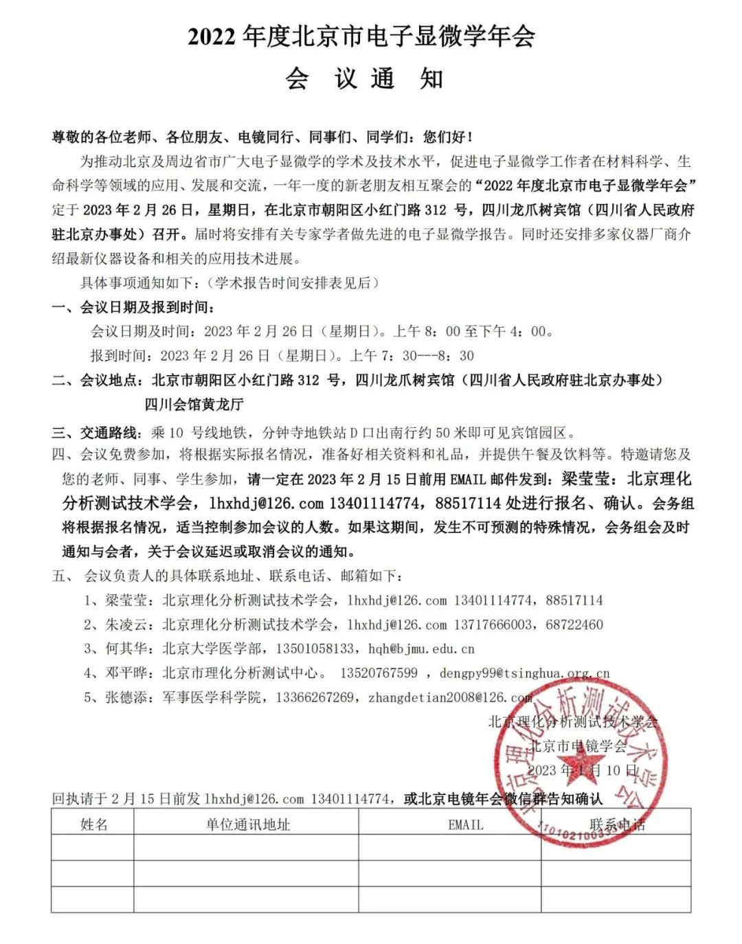 【行業會議】2022 年度北京市電子顯微學年會通知