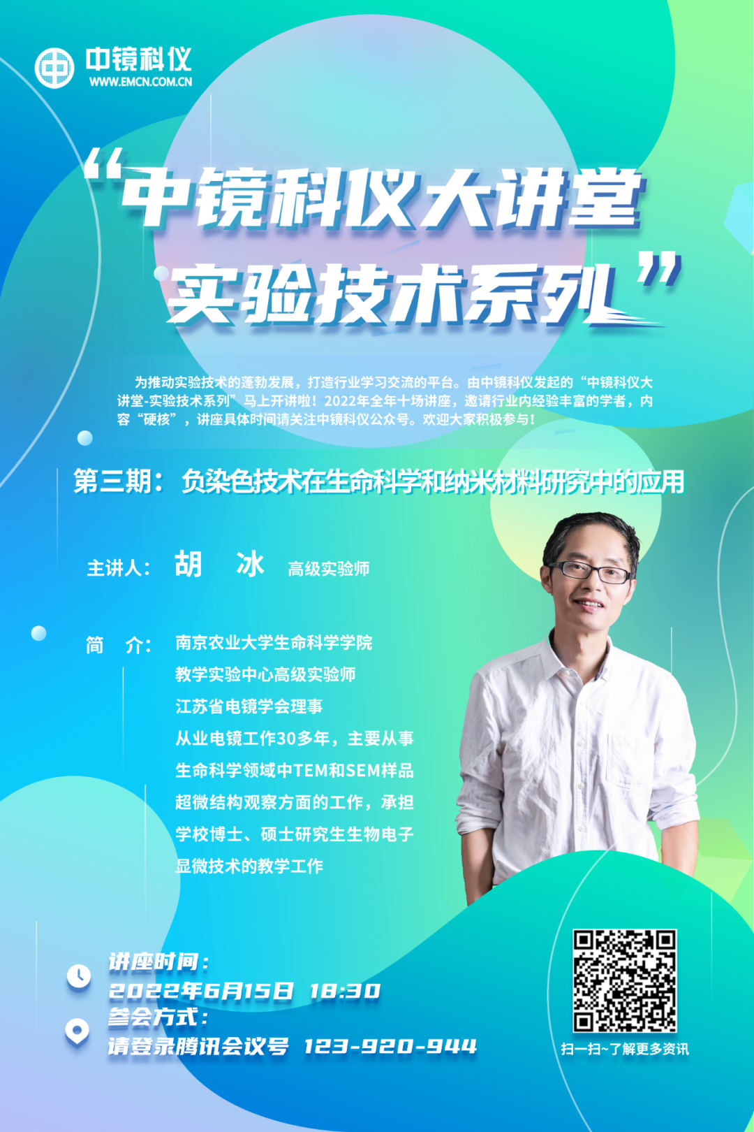 嘉賓是來自南京農業大學生命科學學院教學實驗中心高級實驗師胡冰老師,胡老師為我們帶來了《負染色技術在生命科學和納米材料研究中的應用》,內容詳實,深入淺出,精彩非凡! 現將本期講座回放發布,供大家學習,精彩不容錯過!
