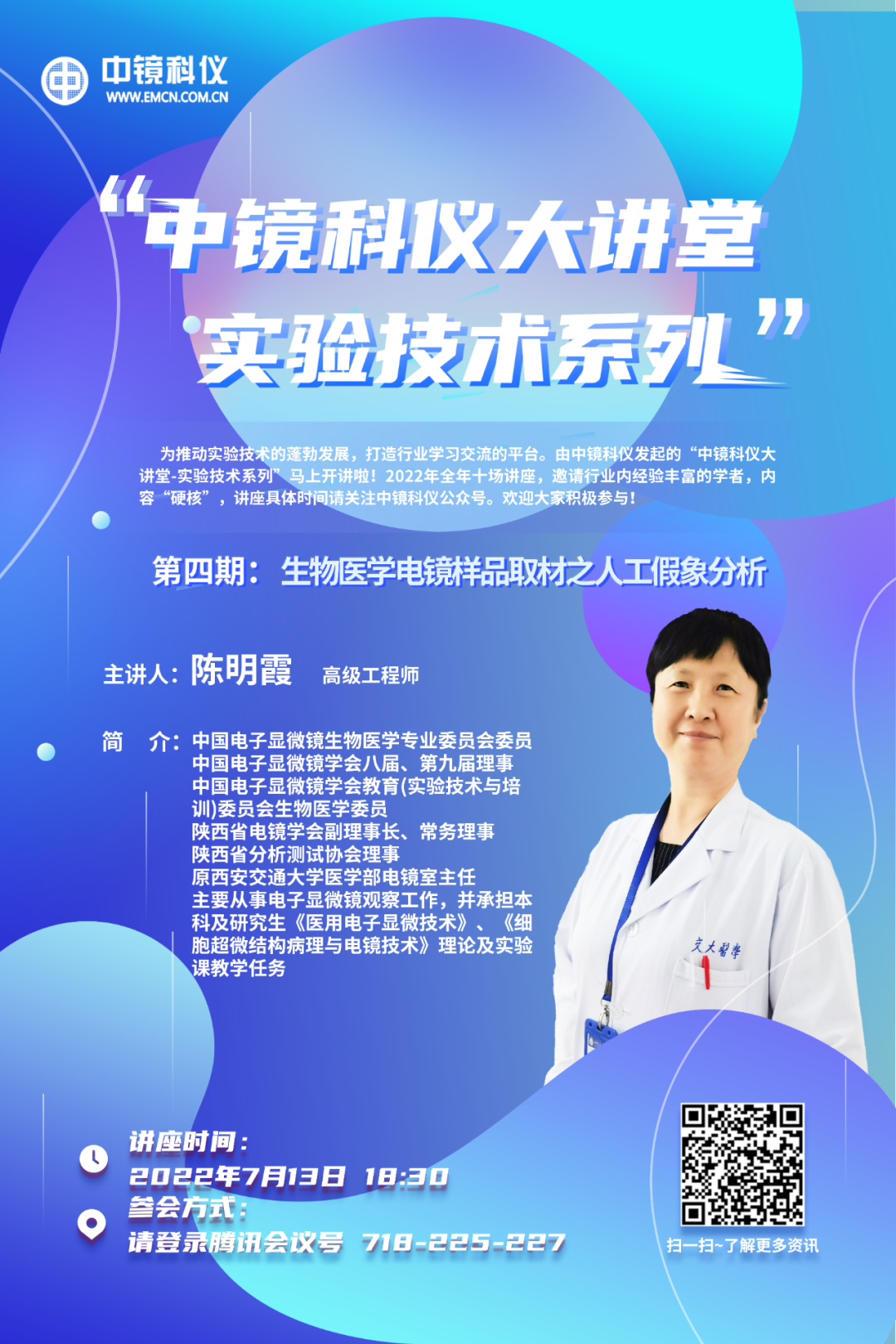 【會議回顧】中鏡科儀大講堂-實驗技術系列視頻回放 中鏡科儀大講堂-實驗技術系列視頻回放 為推動實驗技術的蓬勃發展,打造行業學習交流的平臺。由中鏡科儀發起的第四期“中鏡科儀大講堂-實驗技術系列”圓滿結束!嘉賓是來自西安交通大學醫學院電鏡室陳明霞高級工程師,陳老師為我們帶來了《生物醫學電鏡樣品取材之人工假象分析》,內容詳實,深入淺出,精彩非凡! 現將本期講座回放發布,供大家學習,精彩不容錯過!本系列共十場講座,每月一期,具體時間請持續關注中鏡科儀公眾號,歡迎大家積極參與!