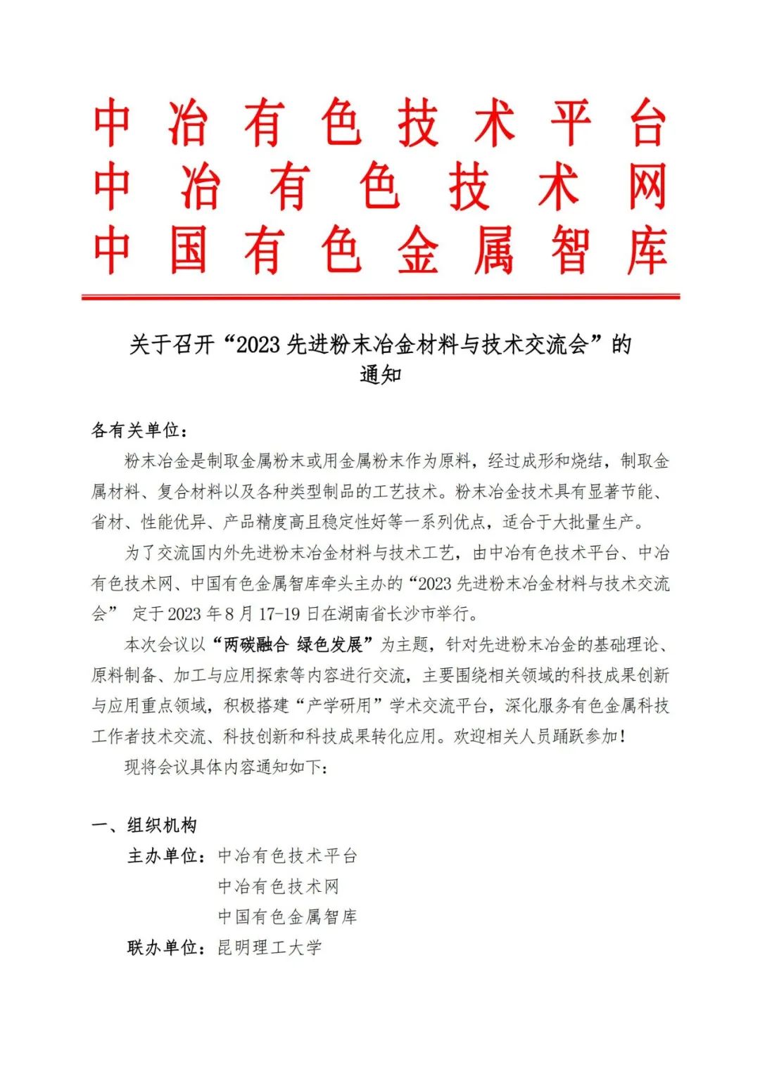 【行業(yè)會(huì)議】2023先進(jìn)粉末治金材料與技術(shù)交流會(huì)通知